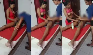 This video is secret one which was made by owner of the massage parlor. The guy is rich businessman who often comes here for handjob and prostate massage. Today he asked for two young girls who flashed their tits and gave him cock massage and proper desi style malish. And it was all stored in the form of this xxx threesome mms video.