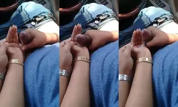Sexy andhra couple in hot car porn video. The guy didn't find any chance to fuck pussy or mouth. So he parked the car in one of the quiet areas and jagged off. His wife also helped him ease out his hardon and cum. And the husband cummed on this andhra bhabhi's hands only. Watch this mobile made xxx porn video of desi masturbation now.