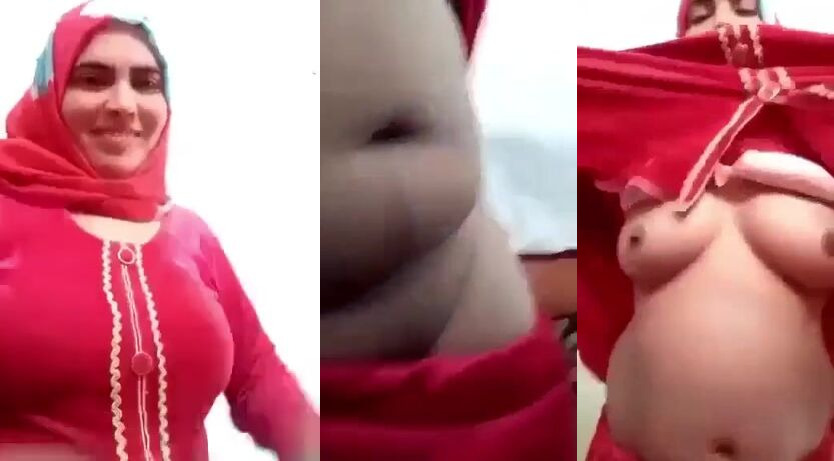 Fat boobs hijabi woman giggled at the start of the naked video call. She lifted her maroon top and started to squeeze her boobs and tickling those milk valves (the nipples).She was showing both the boobs one by one and trying to keep the guy entices and engaged with her lust here. She then says le pee le (drink). And then she said I love you. The guy on the other end asked this hijabi lady to open her vagina, and she did it too. Watch her now playing with her pussy flpas and twerking her ass in this xxx porn mms now.