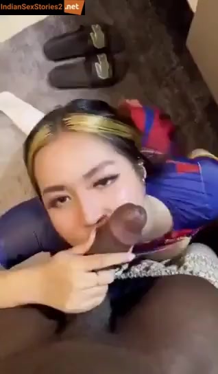 This assamese girl came to dubai on tourist visa and she is living life of a callgirl here. Today one jamaican guy booked her and took to hotel for some rough fucking. The assamese girl in skirt and top took out her boobs open and started to please that cock sitting on her knees. Watch her spitting on that big cock repeatedly and sucking it.