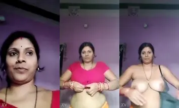 Mature Indian milf aunty kantaben from gujarat showed her sexy body today. She wore a nice saree and looked traditional wife, but soon she revealed her dark side as she started to get naked and naughty. She removed her saree and unhooked her black bra. Soon her pussy was also in open and she started to fuck it with her long finger. Aunty came near her mobile phone, sent a flying kiss and said I love you too!