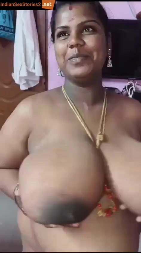 Mrudala is happy while showing her milk filled tanker boobs. Tamil housewife is so busty when it comes to her chest and ass. And look at the muscular growth on those boobs man. She is barely able to hold each boob in one hand. She is kind of weighing them up and showing it to the guy who made this xxx blue film.