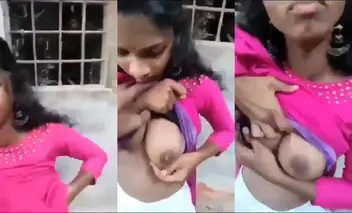 Young tamil girlfriend showing her boobs in video
